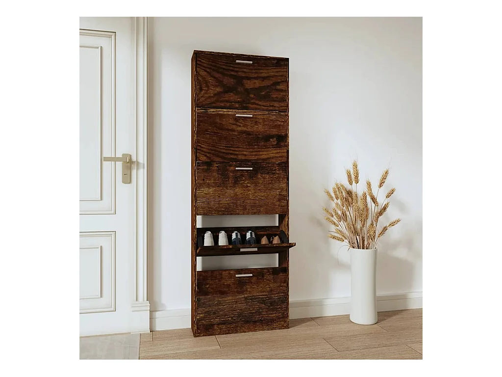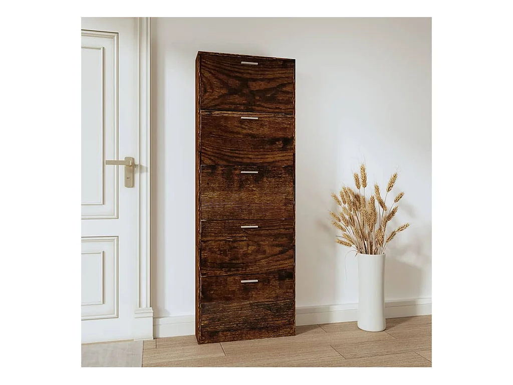 Mueble zapatero madera contrachapada roble ahumado 59x17x169 cm ES629388