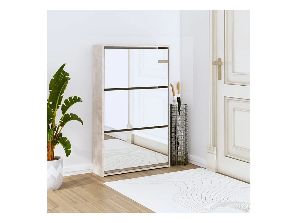 Mueble zapatero y espejo 3 niveles gris hormigón 63x17x102,5 cm ES458015
