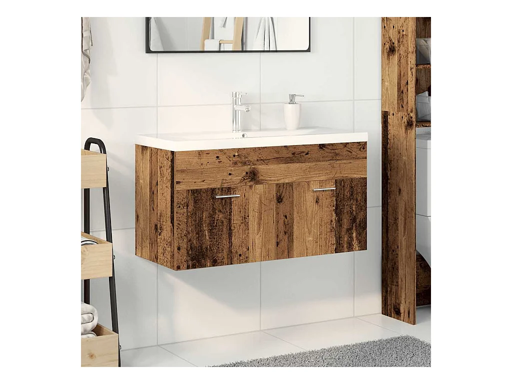 Muebles con lavabo integrado, madera antigua, madera de ingeniería.