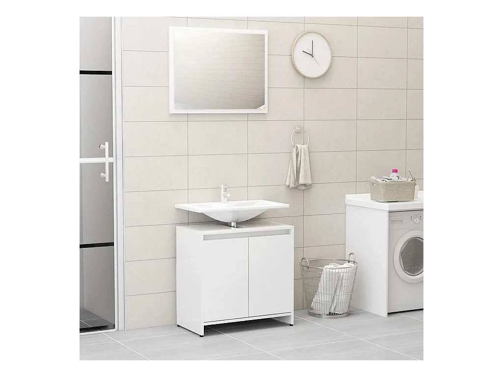 Conjunto de muebles de baño de 2 piezas en blanco de alto brillo