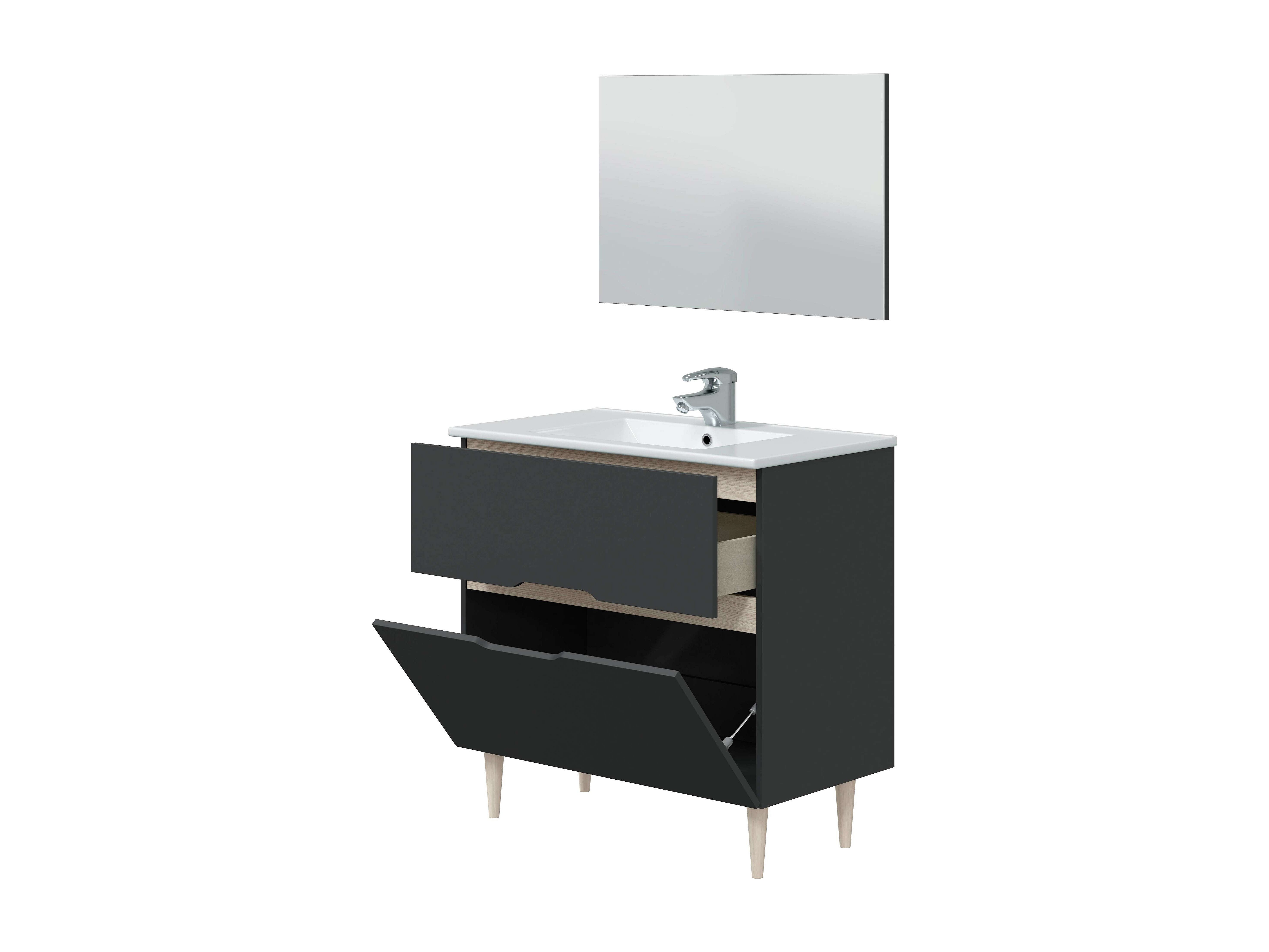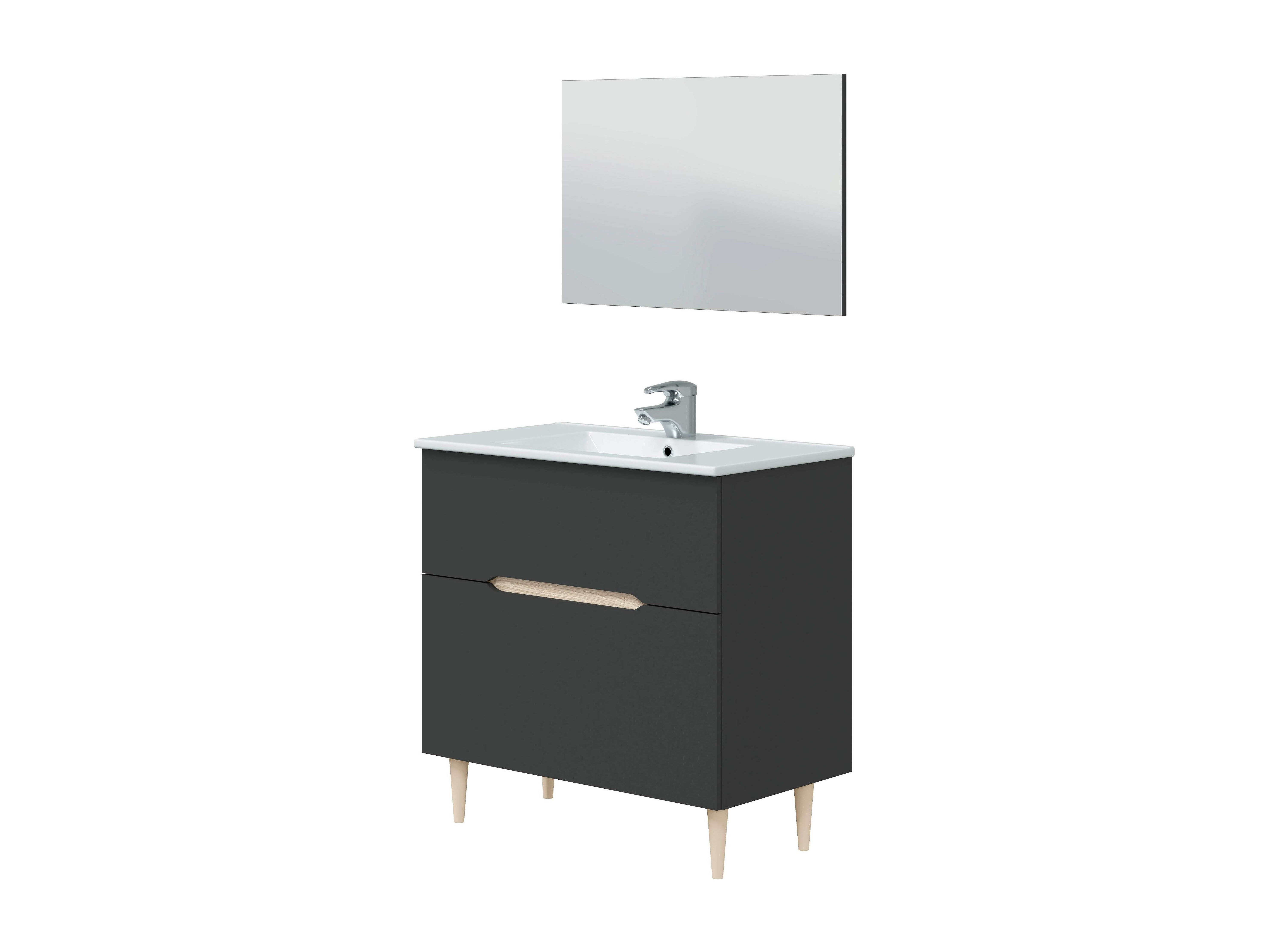 Mueble Baño c/espejo Lotto Gris antracita y roble 80x45x80 cm (Sin lavabo)