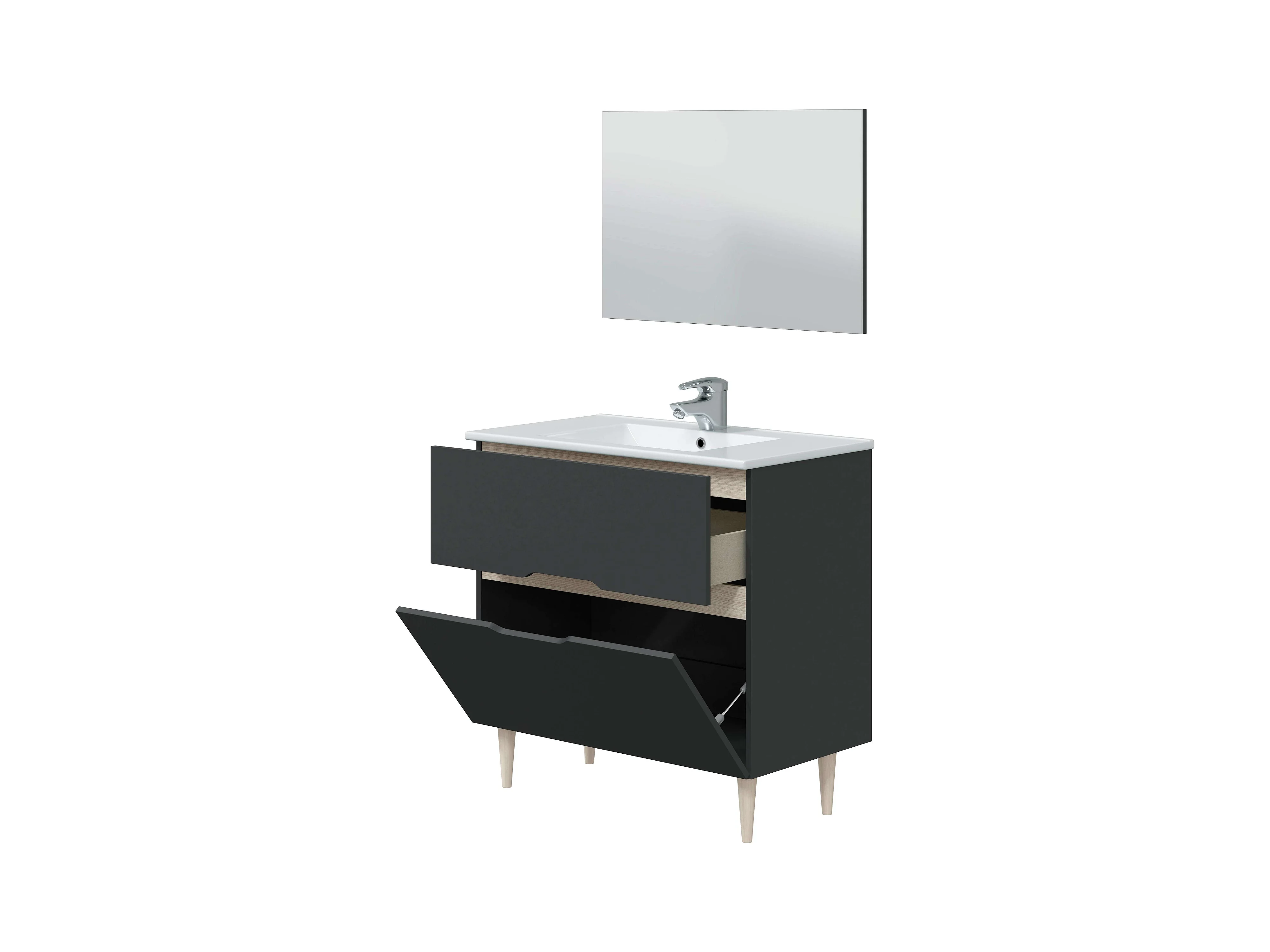 Muebles de Baño Moderno Lotto Gris Antracita y Roble (espejo+lavabo+columna)