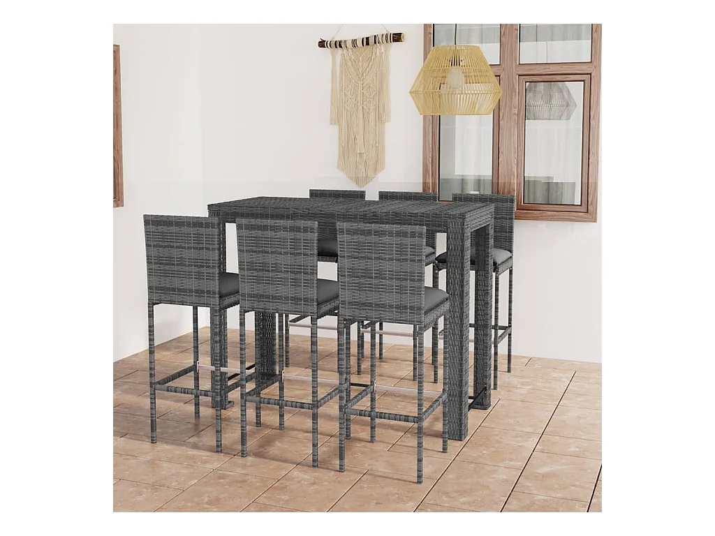 Muebles de bar de jardín 7 piezas ratán PE y cojines antracita