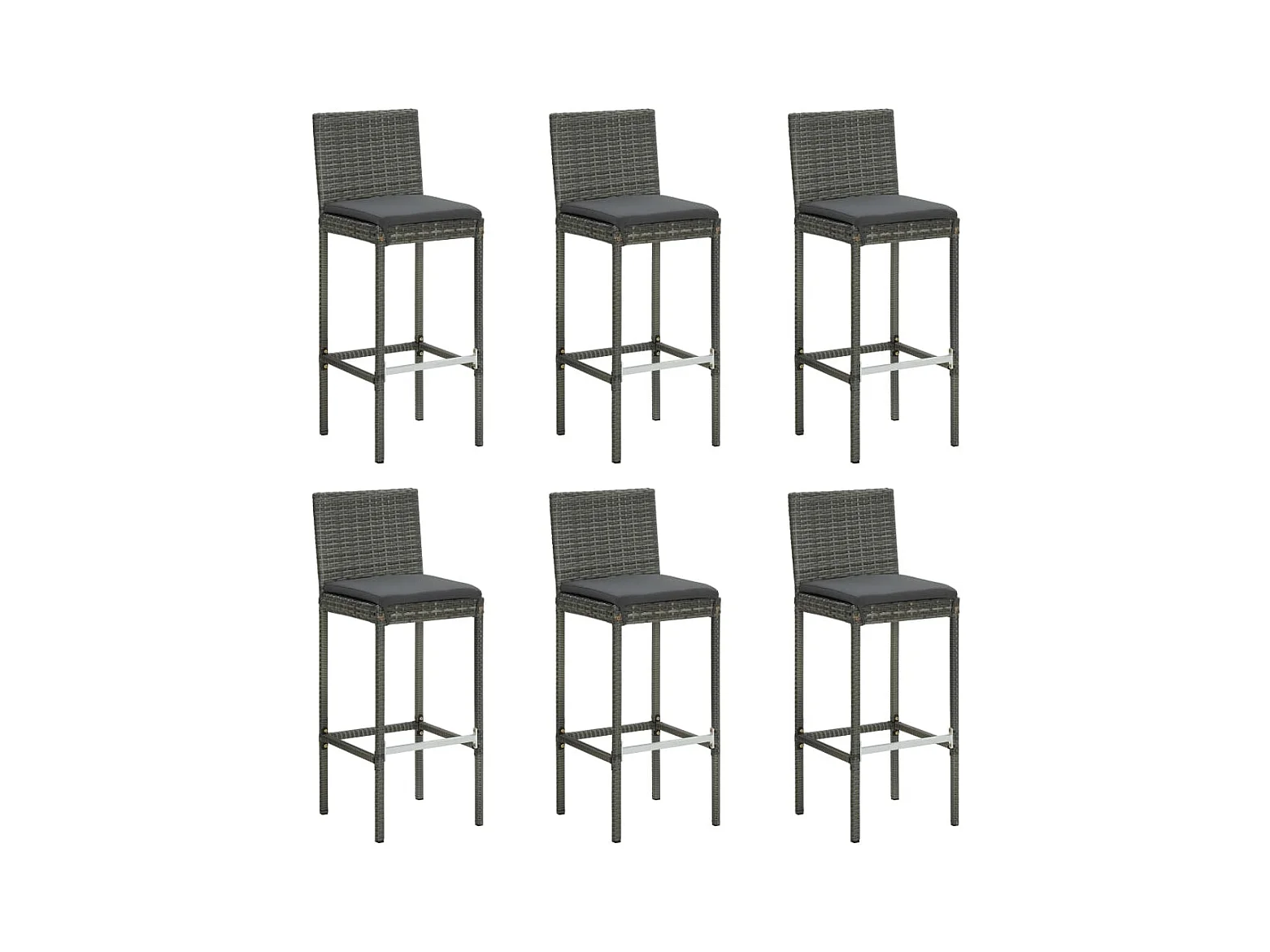 Mesa y taburetes altos jardín y cojines 7 piezas ratán PE gris