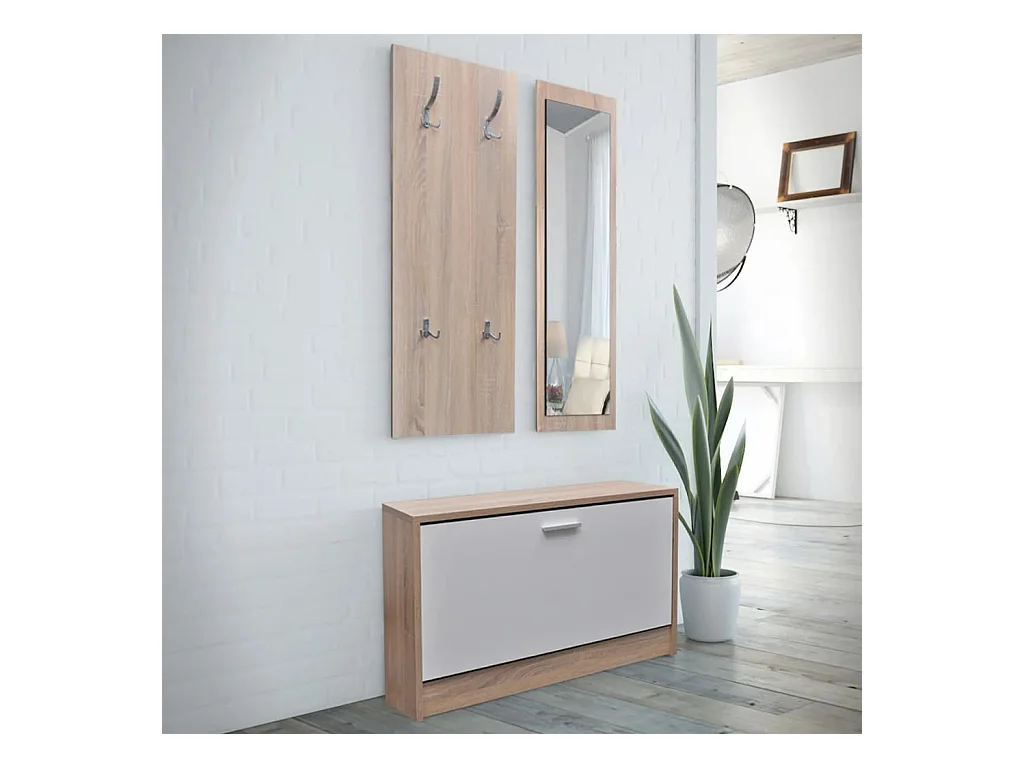 Muebles de entradita con zapatero madera 3 color roble y blanco ES265918