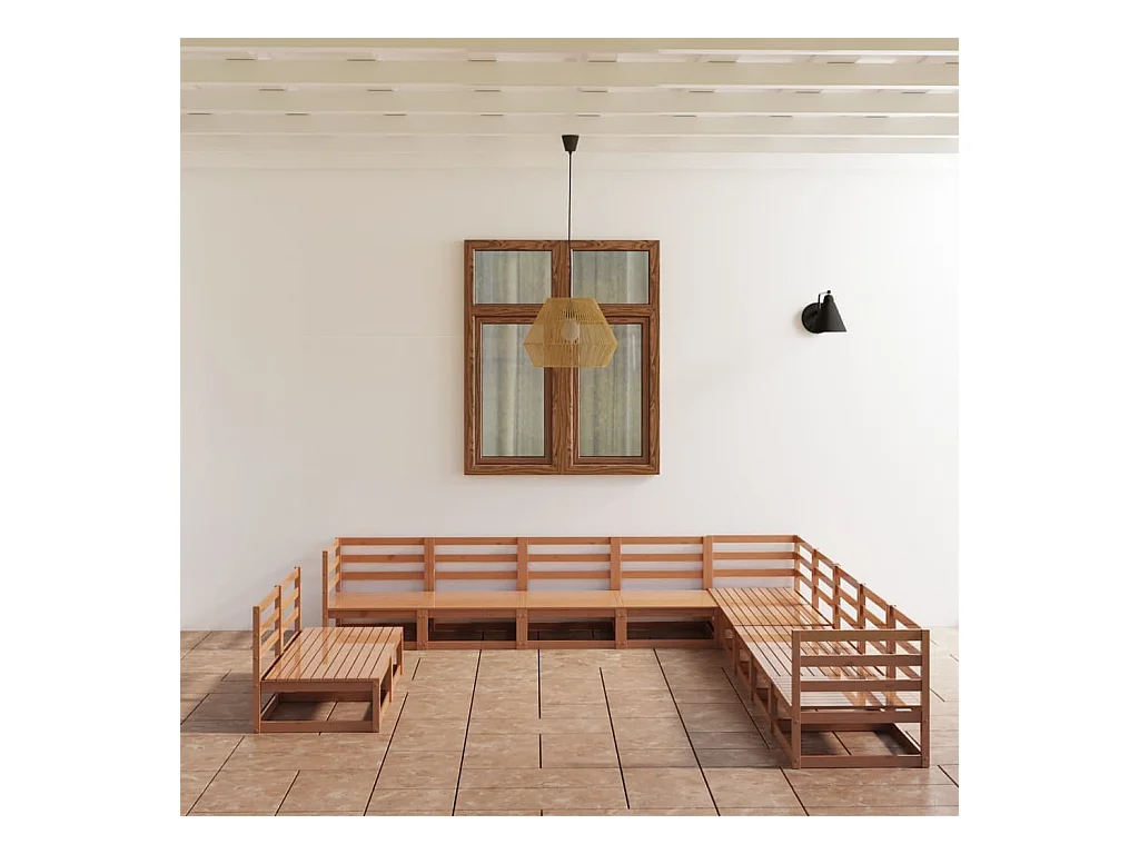 Muebles de jardín 12 piezas marrón miel madera maciza de pino