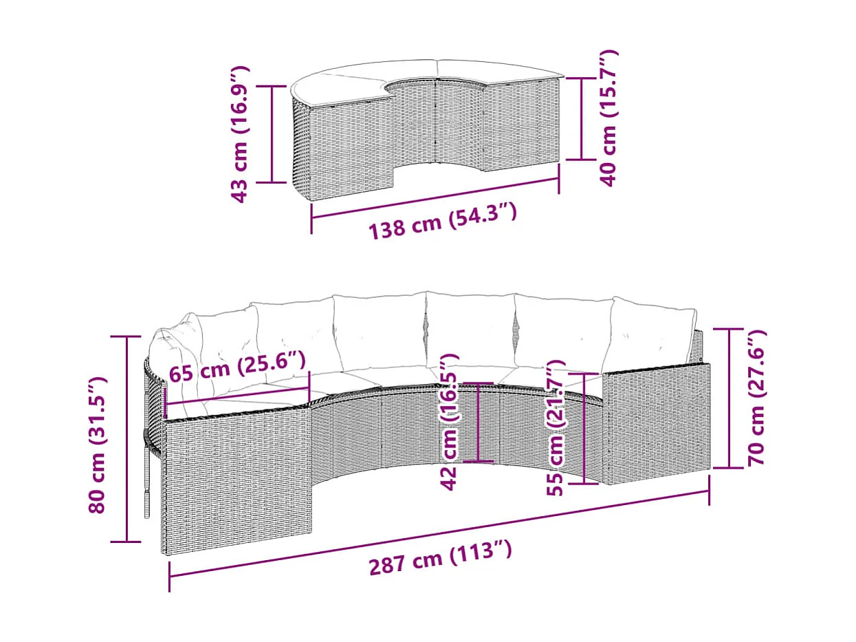 Muebles de jardín 2 piezas media caña resina tejida beige