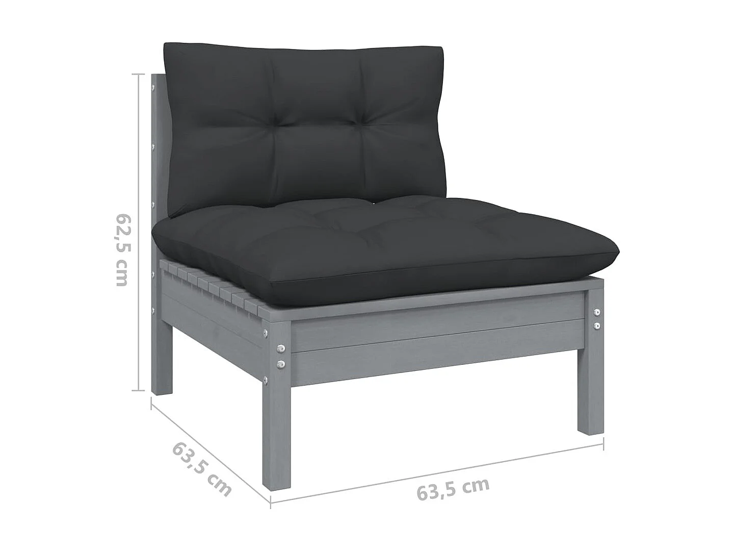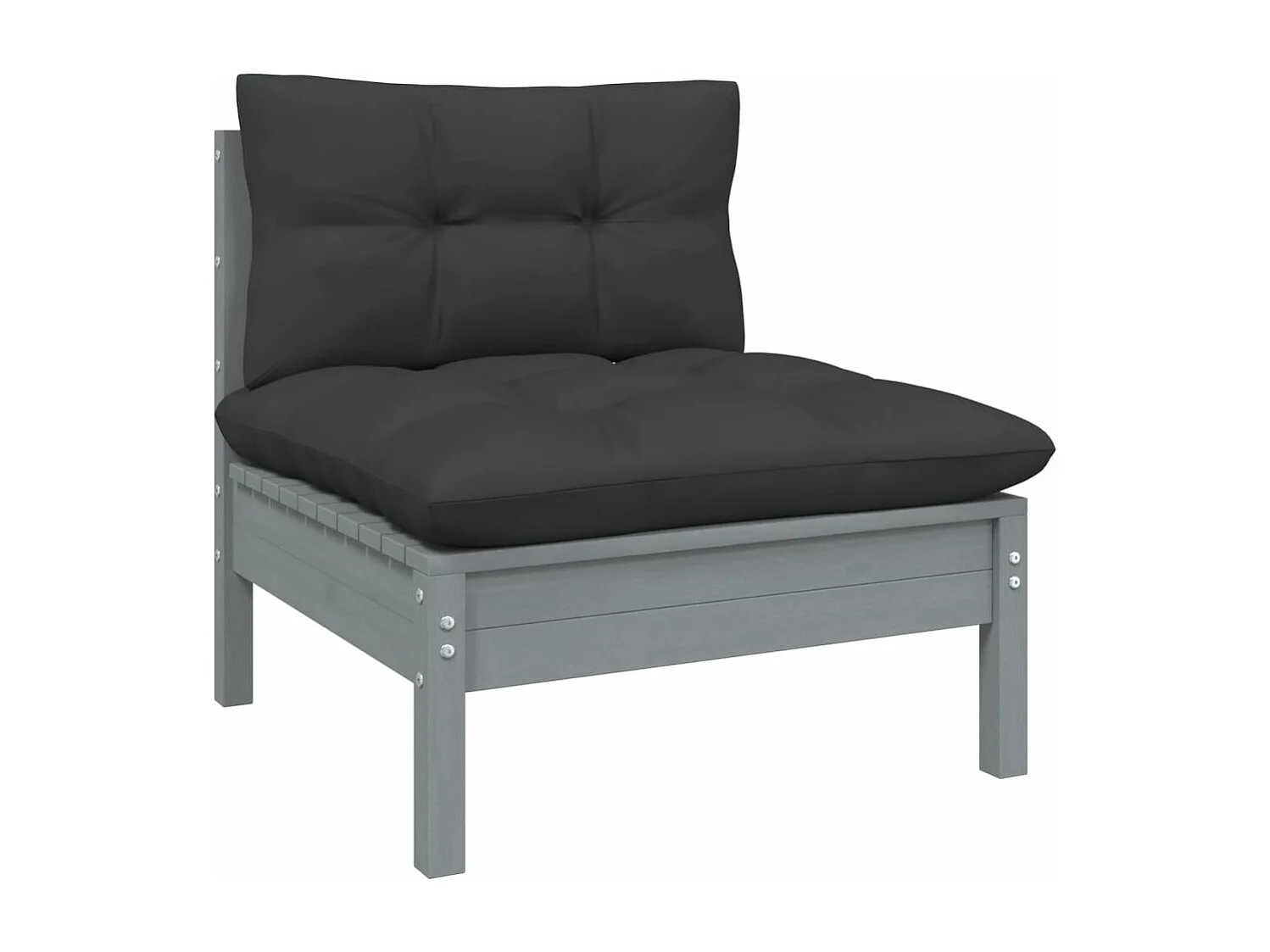Muebles de jardín 4 piezas con cojines de madera maciza de pino Gris