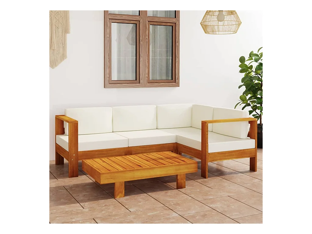 Muebles de jardín 4 piezas con cojines madera maciza de acacia