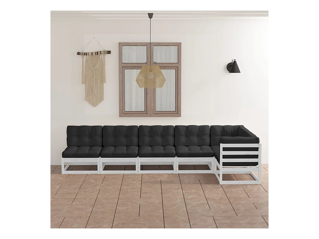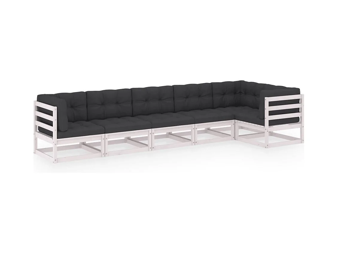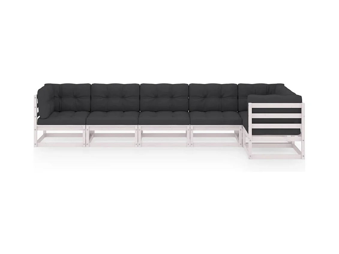Set de muebles de jardín 6 piezas con cojines madera pino blanco