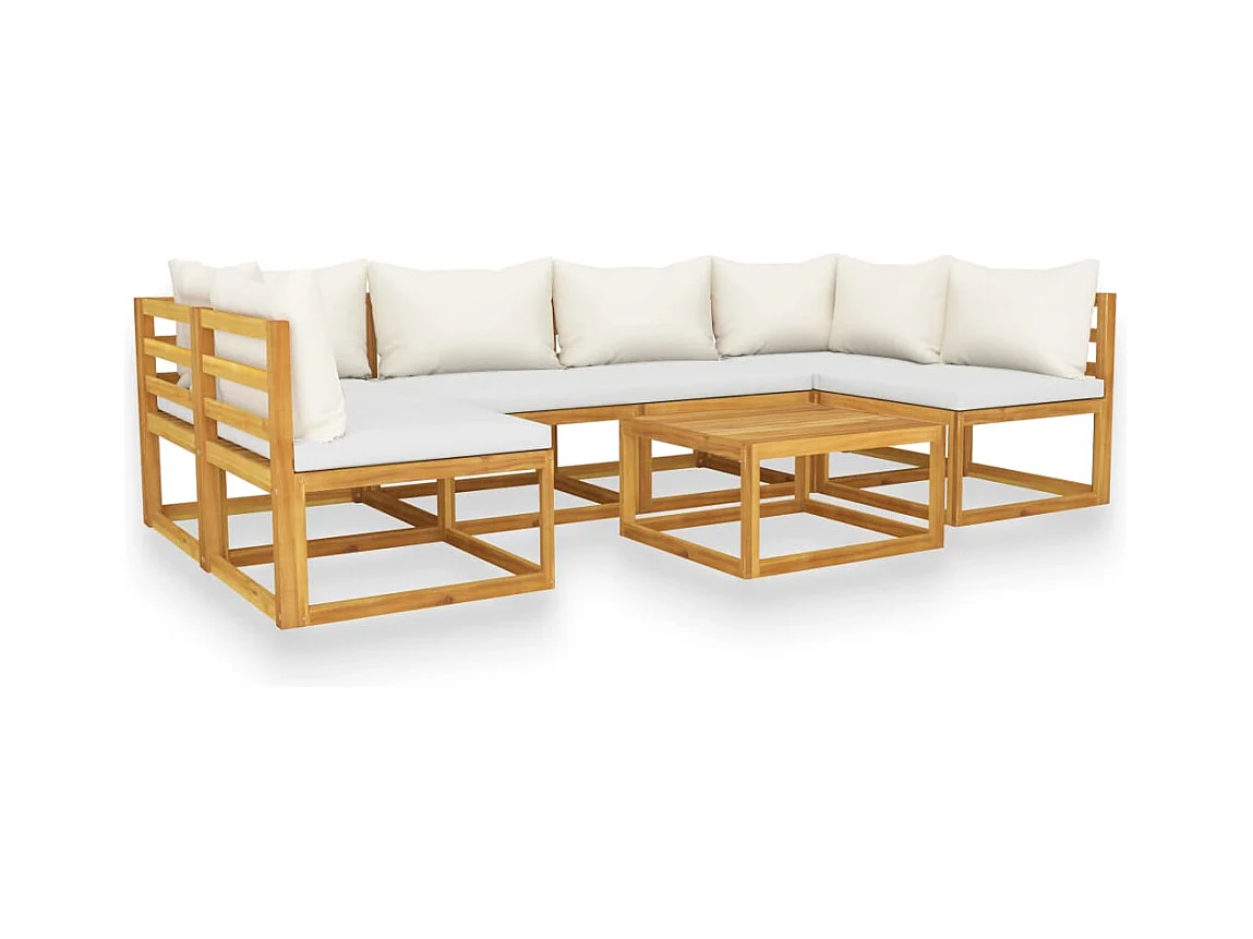 Muebles de jardín 7 piezas cojines crema madera maciza de acacia