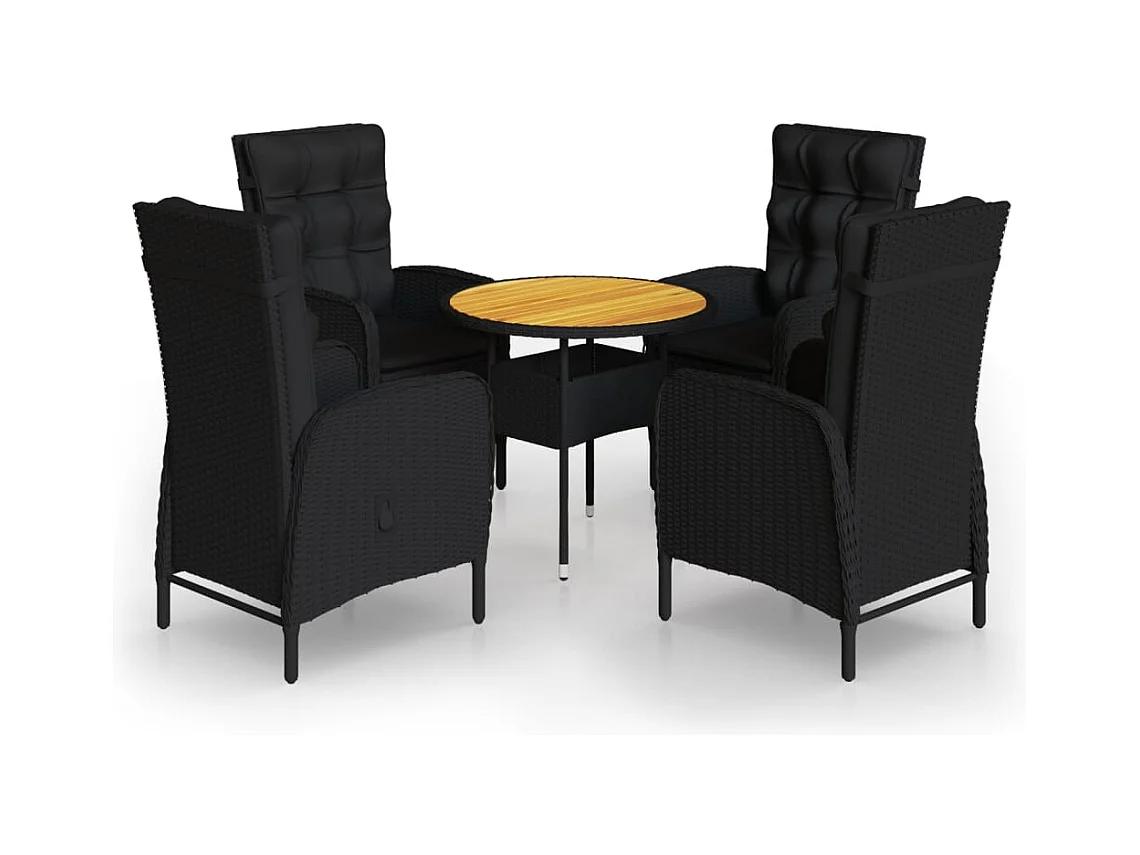 Muebles de comedor y cojines de jardín 5 piezas resina tejida negra 02_0014892