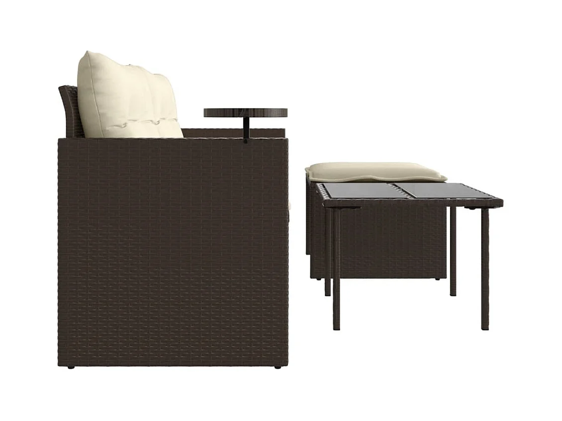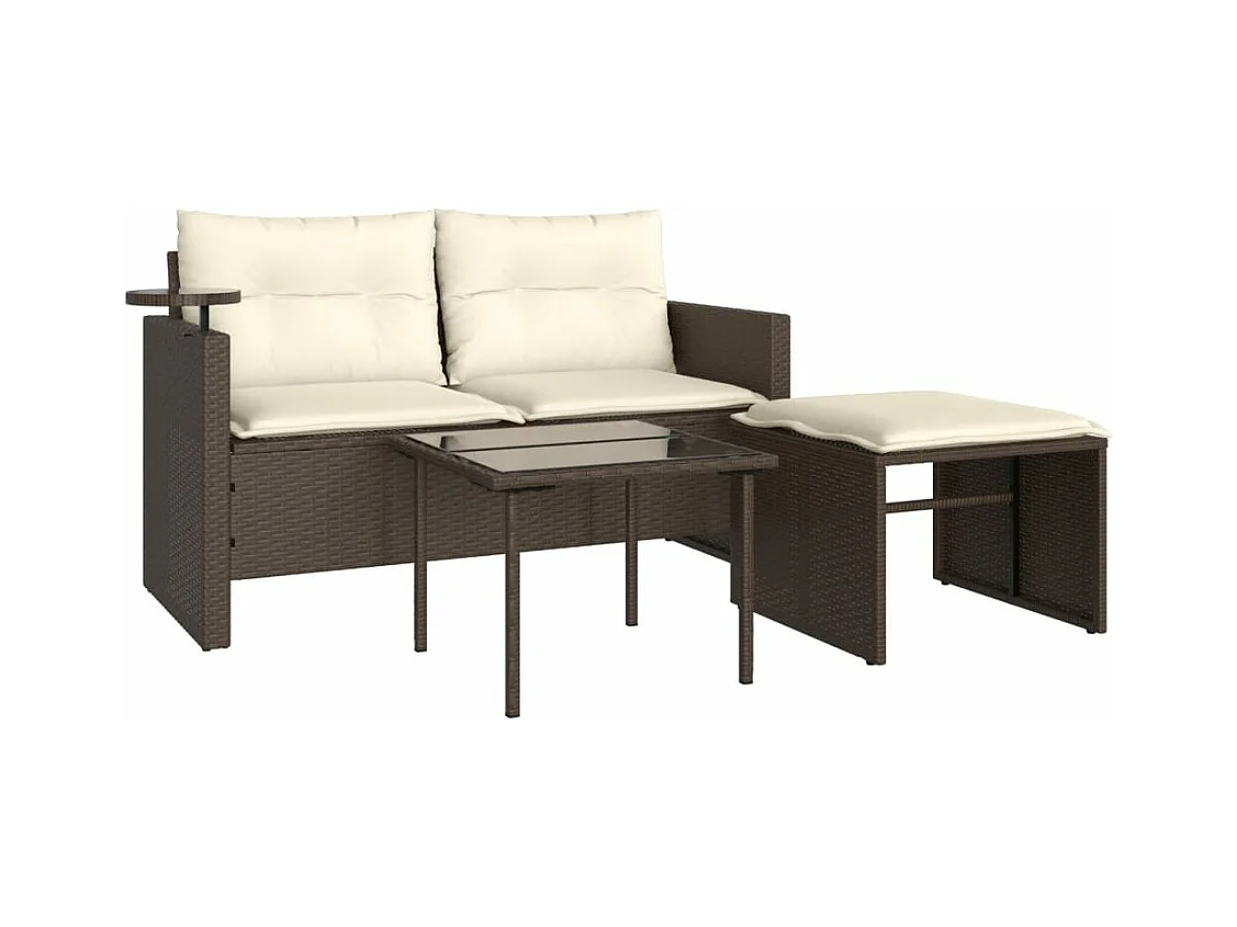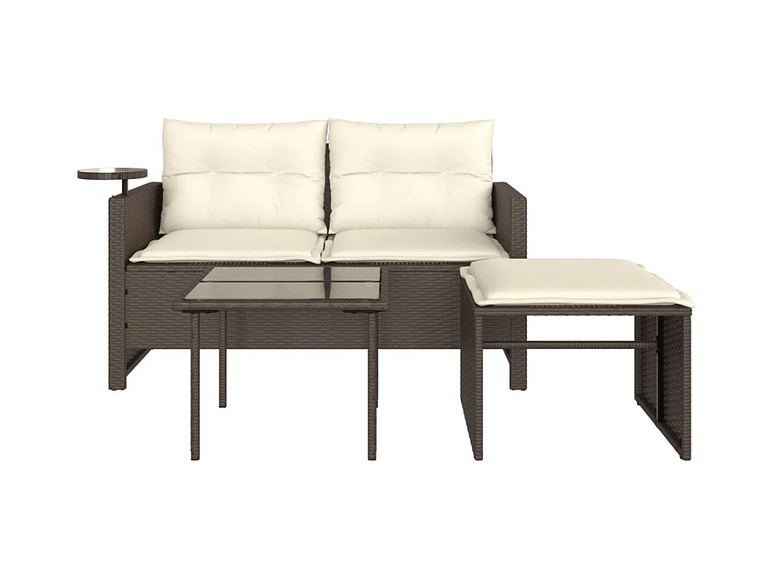 Muebles de jardín con cojines 3 piezas resina tejida marrón