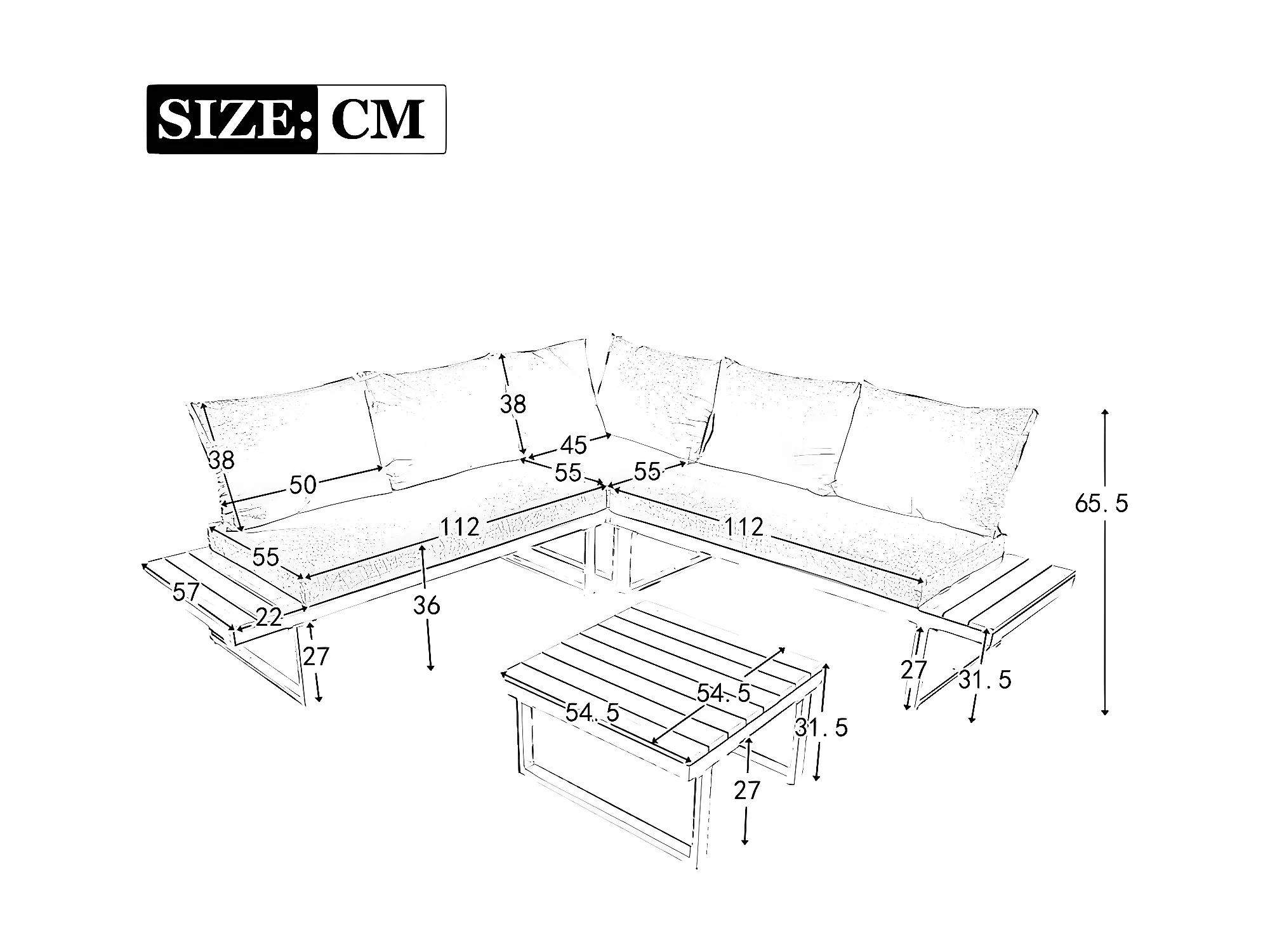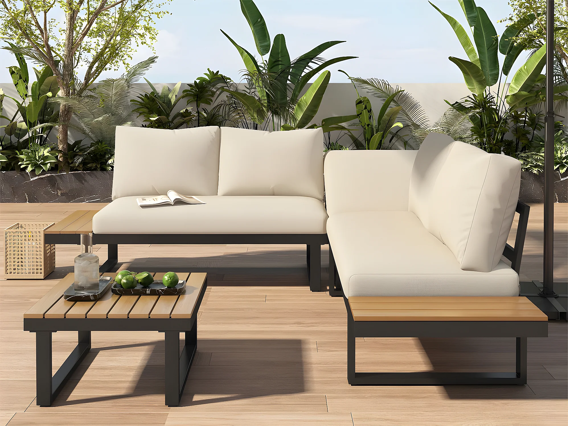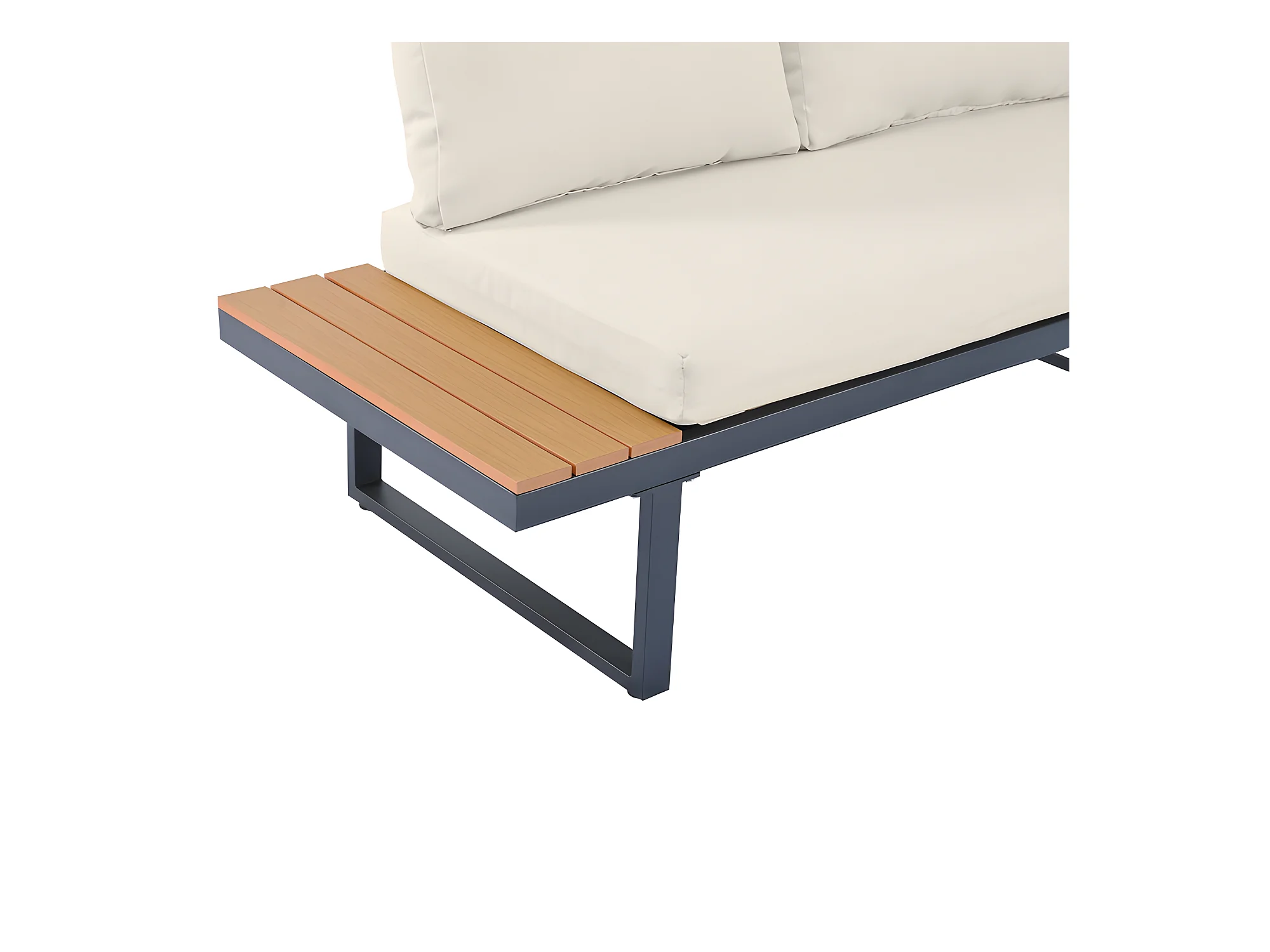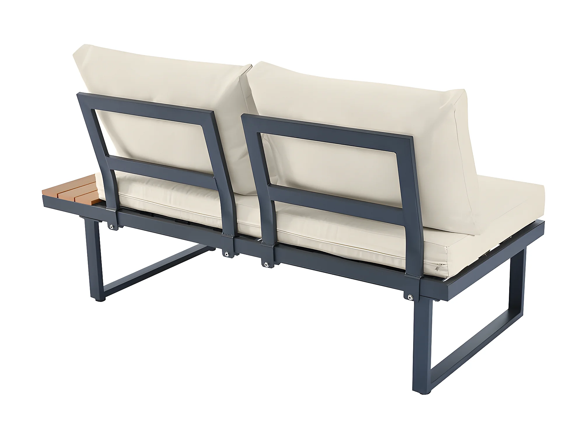 Muebles de jardín de acero galvanizado gris - 5 plazas - 2 sofás, 1 rinconera reclinable y 1 mesa de centro - Beige