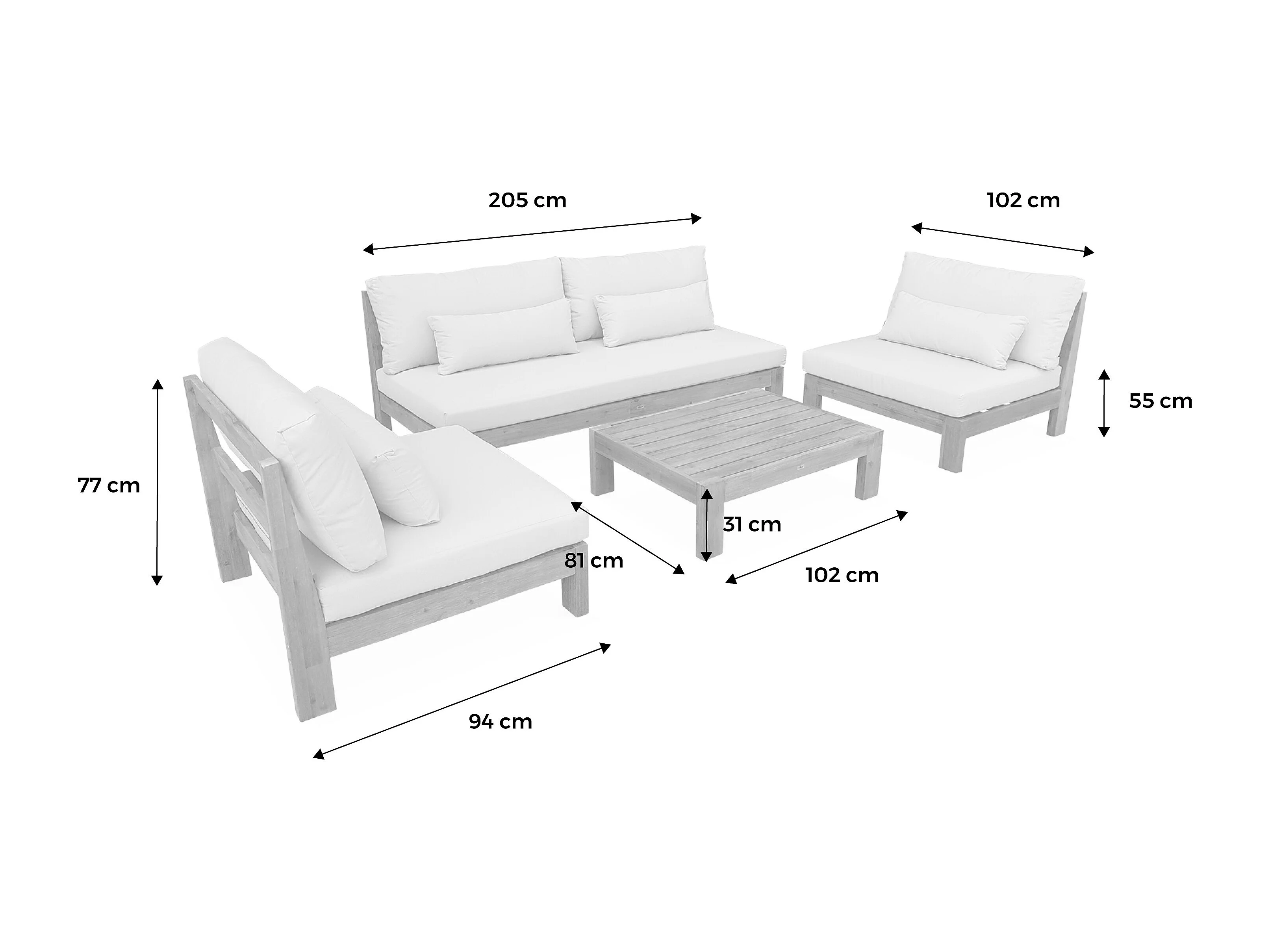 Conjunto de muebles de jardín de madera de 5 plazas madera