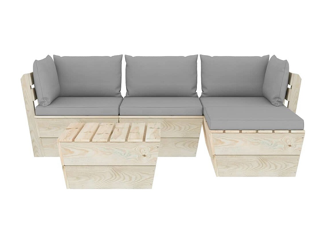 Muebles de jardín de palets 5 piezas y cojines madera de abeto