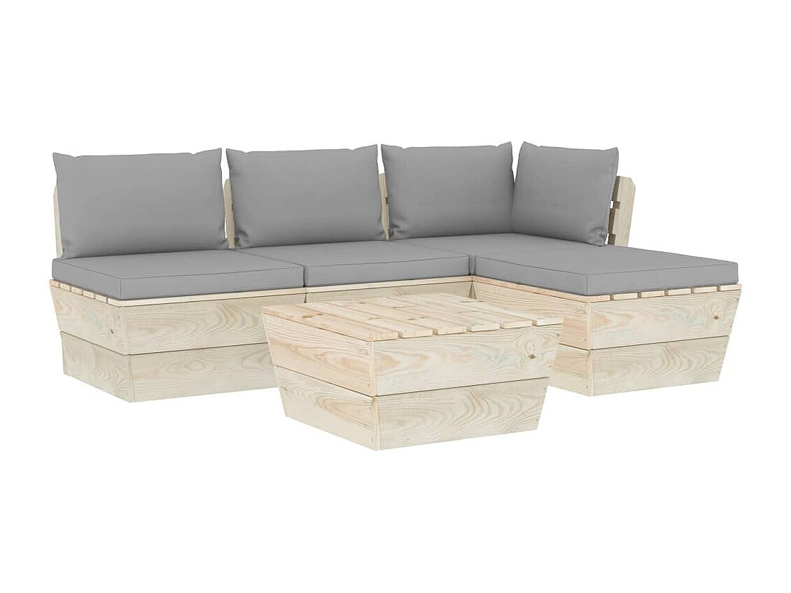 Muebles de jardín de palets 5 piezas y cojines madera de abeto