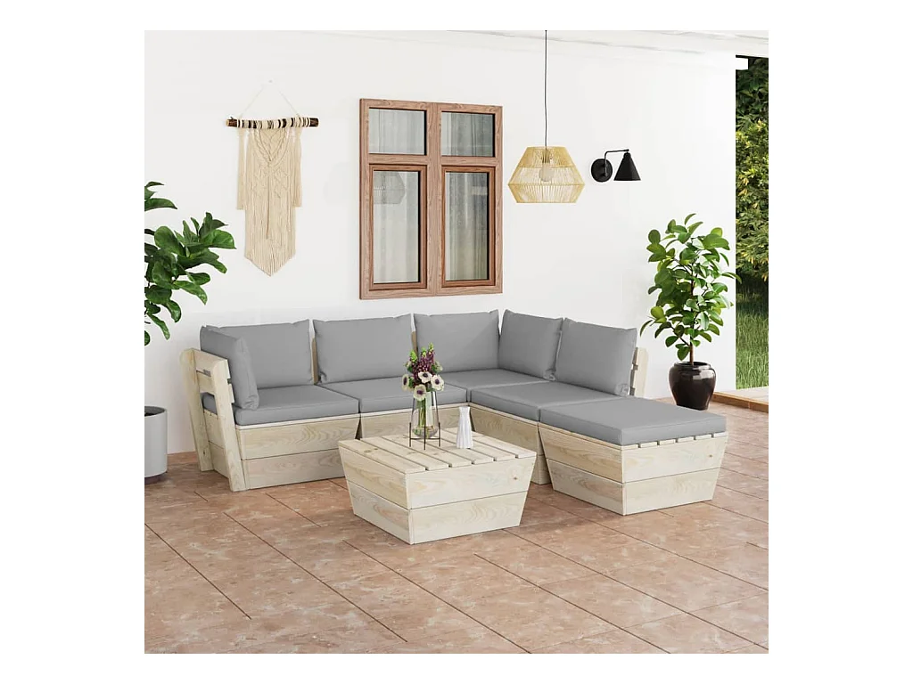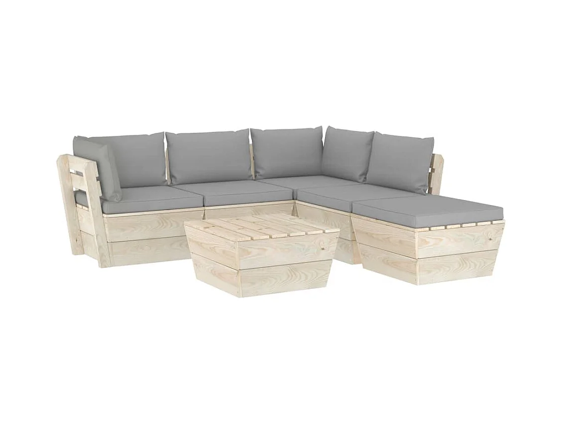 Muebles de jardín de palets 6 piezas y cojines madera de abeto