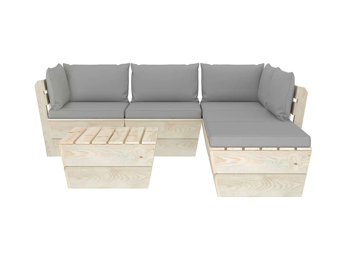 5 pzas Salón de jardín madera maciza de pino gris ES47862