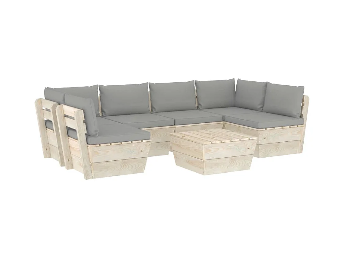 7 pzas Salón de jardín gris madera de pino maciza ES74517