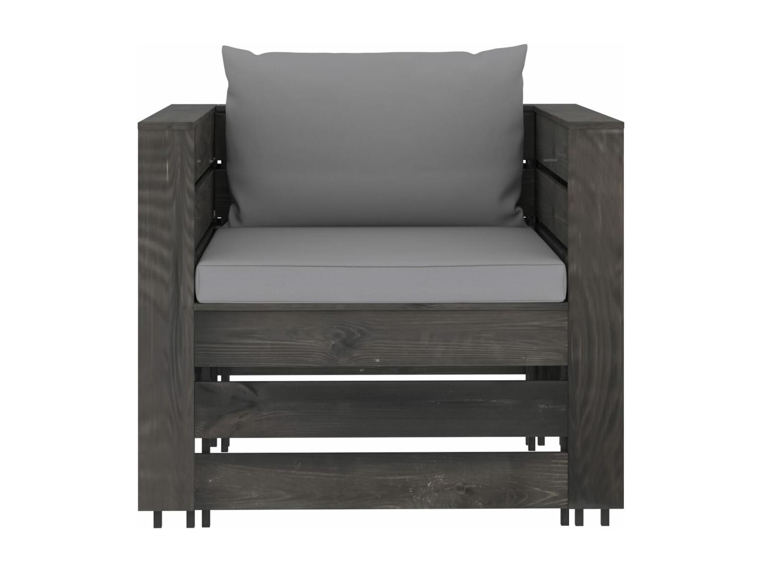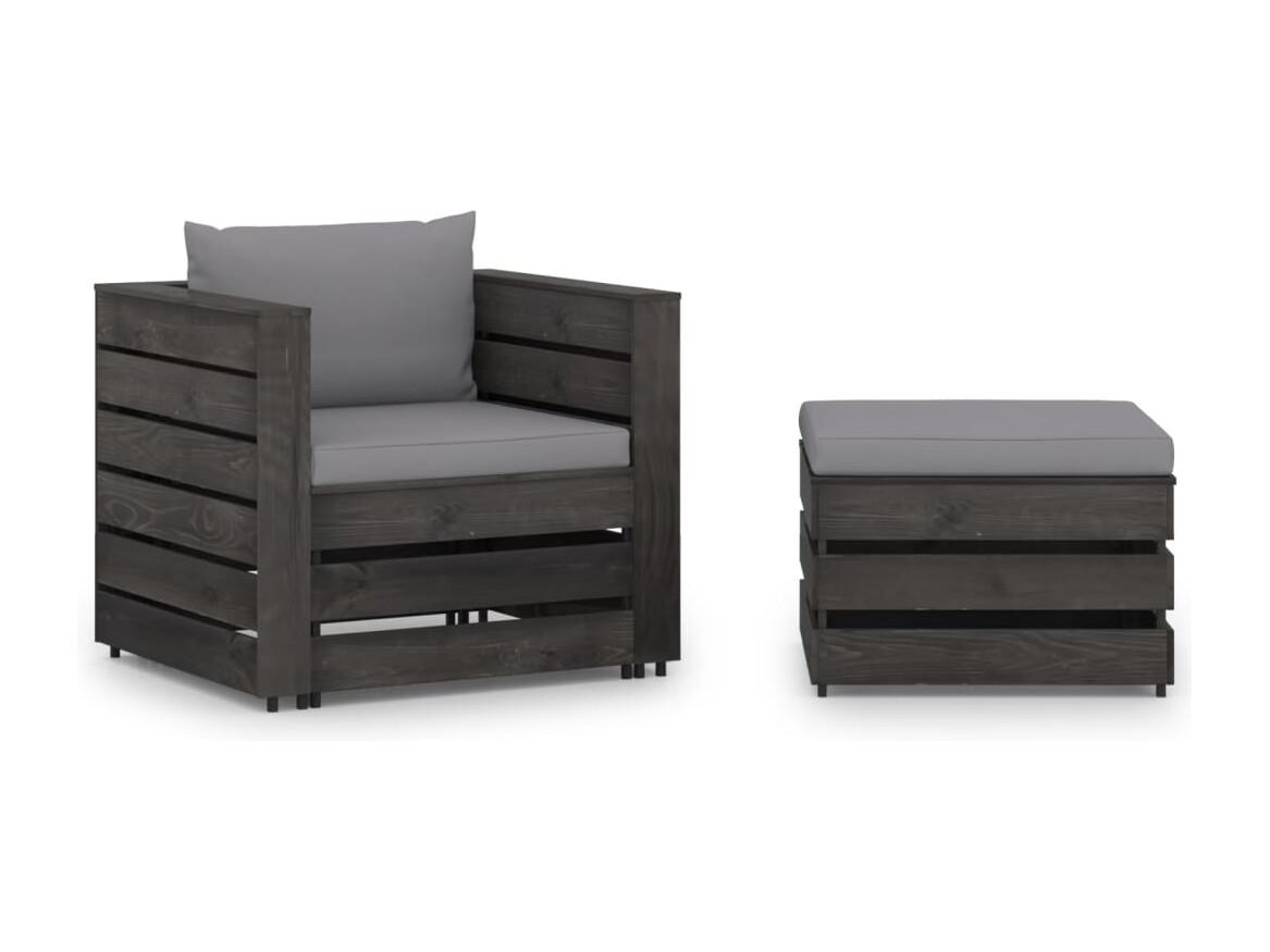 Muebles de jardín muebles de exterior Juego de muebles de 2 piezas con cojines de madera impregnada en gris 02_0015886