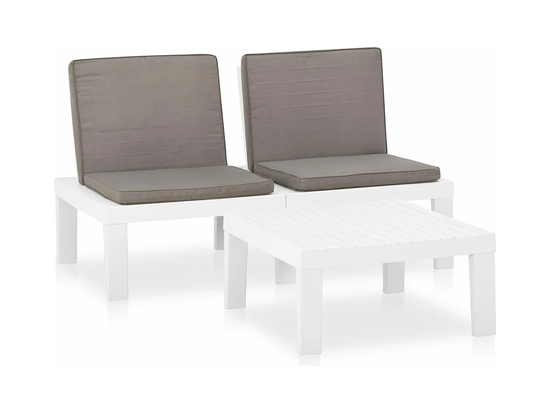 Set de muebles de jardín 3 piezas con cojines plástico blanco