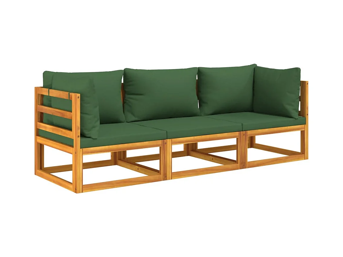 Muebles de jardín muebles de exterior juego de muebles de 3 piezas con cojines verdes de madera maciza 02_0016016
