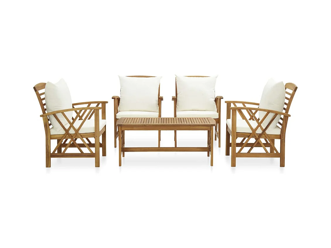 Muebles de jardín muebles de exterior juego de muebles de 5 piezas con cojines de madera maciza de acacia 02_0016314