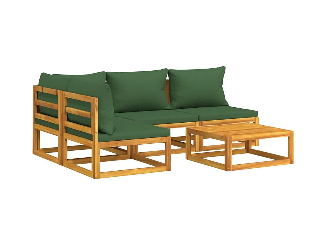 Muebles de jardín muebles de exterior juego de muebles de 5 piezas con cojines verdes de madera maciza 02_0016510