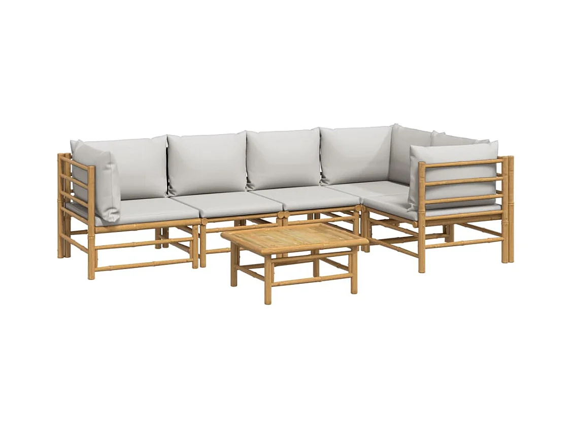 Muebles de jardín muebles de exterior juego de muebles de 6 piezas con cojines de bambú gris claro 02_0016776