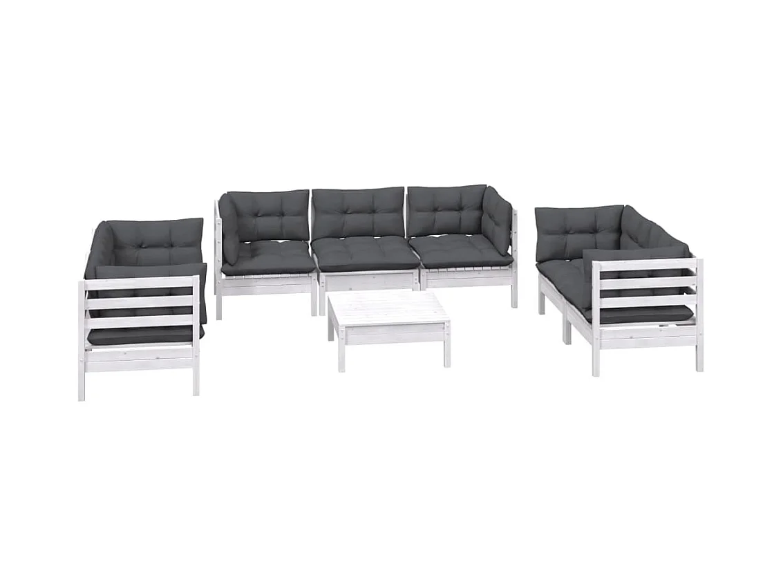 Muebles de jardín muebles de exterior juego de muebles de 8 piezas con cojines antracita madera de pino 02_0017471