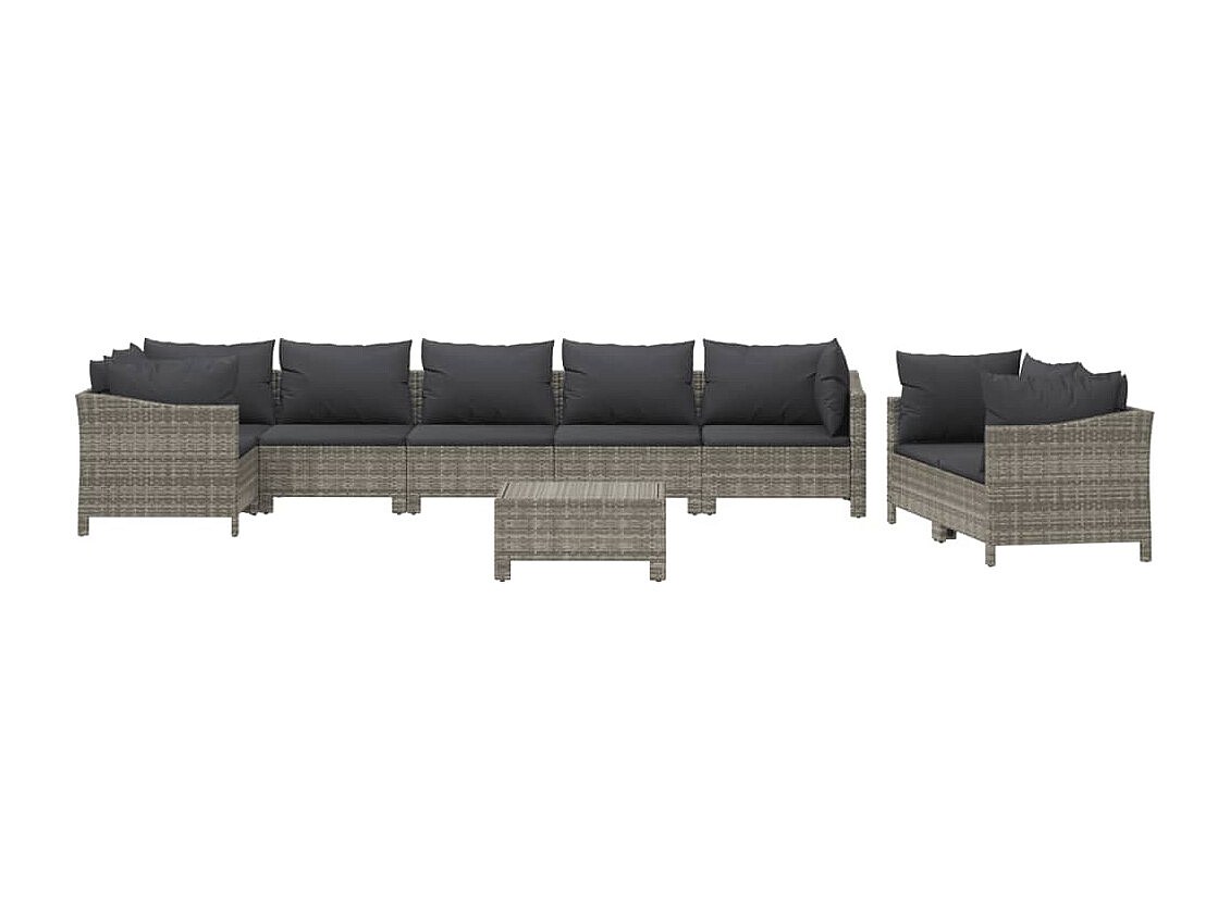 Muebles de jardín muebles de exterior juego de muebles de 10 piezas con cojines de resina tejida gris 02_0015140