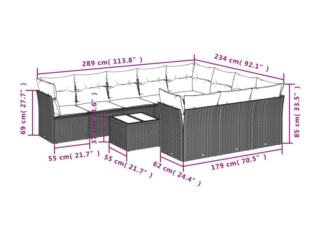 Muebles de jardín y cojines 11 uds resina tejida marrón