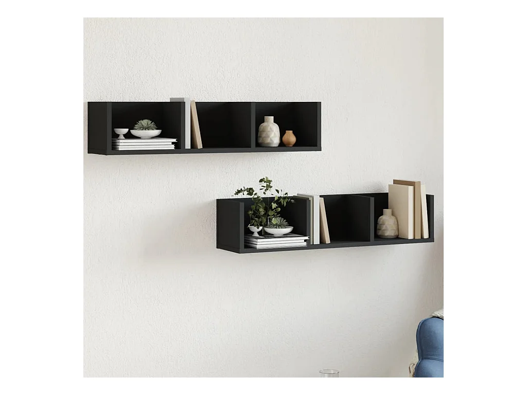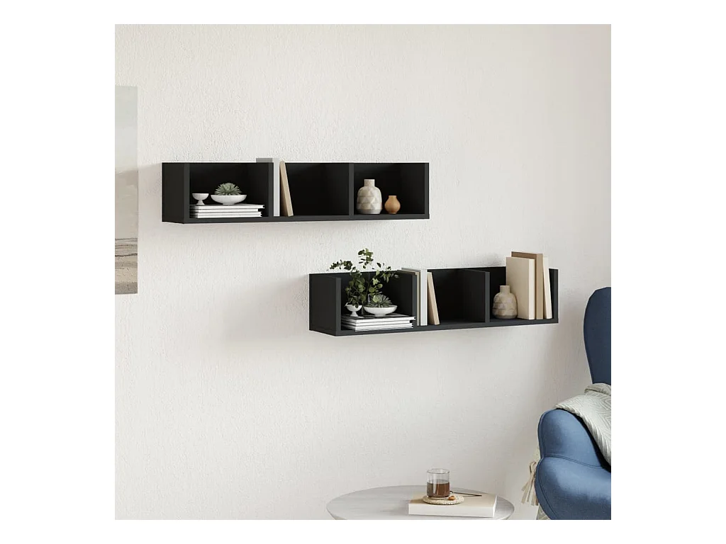 Muebles de pared 2 uds madera de ingeniería negro 75x18x16,5 cm