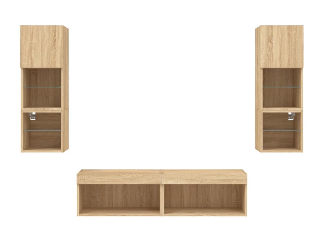 Muebles de pared para TV con LED, 8 piezas, madera de ingeniería de roble sonoma