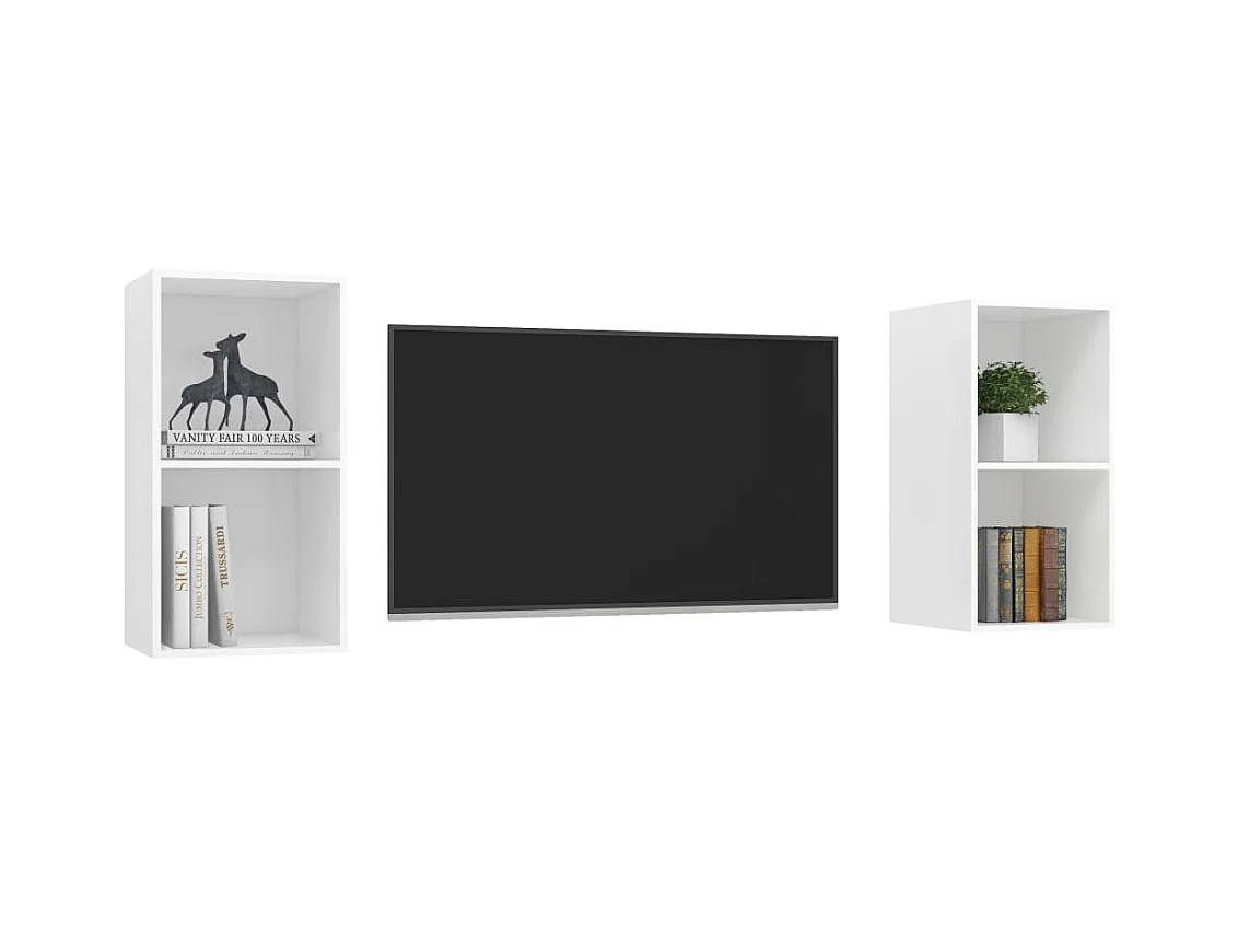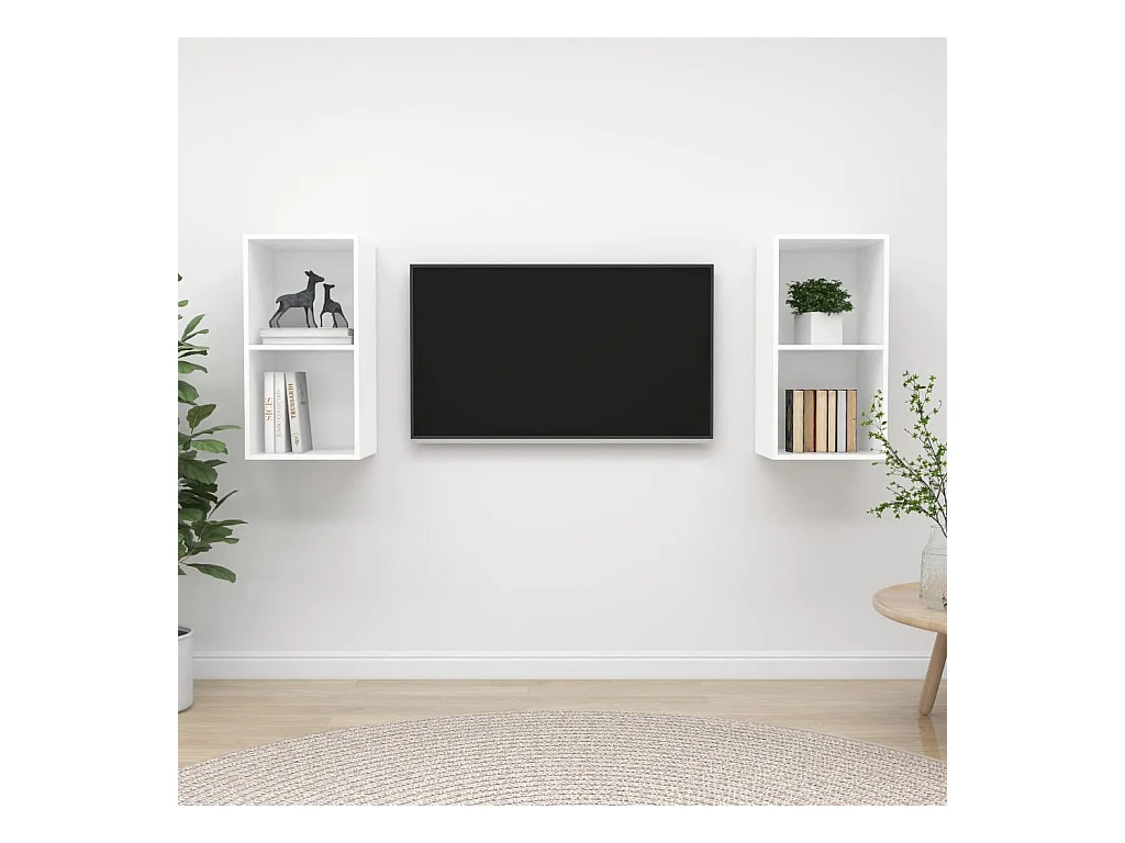 Muebles de salón | Gabinetes de TV | Muebles de TV de pared 2 uds madera ingeniería blanco