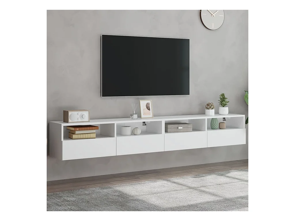 Muebles TV | Gabinetes de TV | Muebles de salón de pared 2 uds madera ingeniería blanco 100x30x30 cm