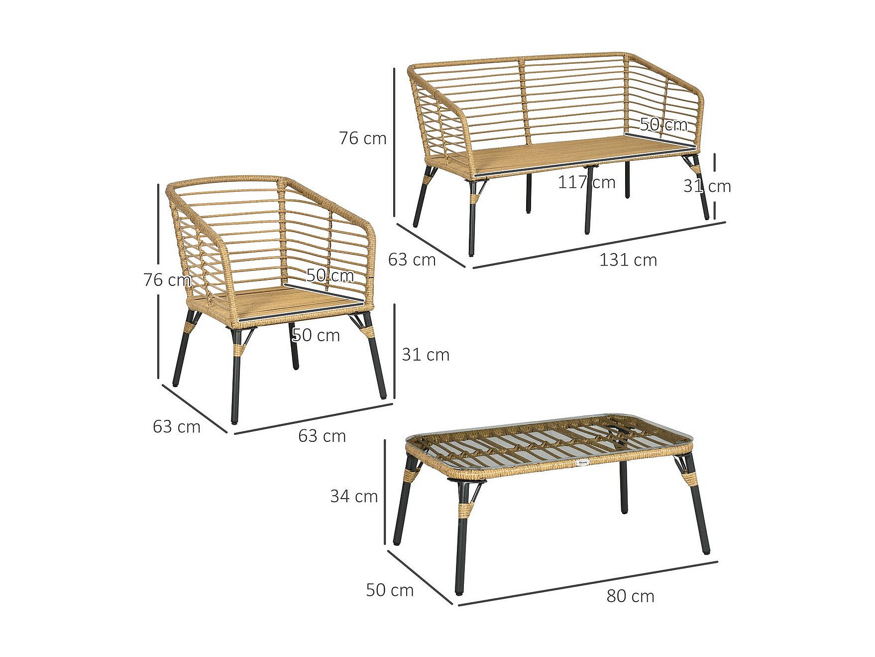 Muebles de ratán arena 131x63x76 cm Outsunny