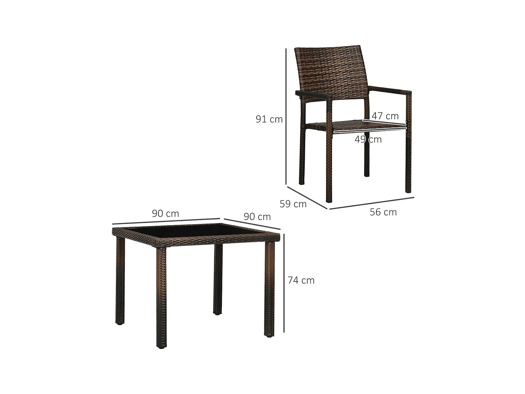 Muebles de ratán marrón 90x90x74 cm Outsunny
