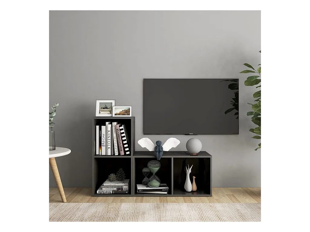 Muebles de salón | Gabinetes de TV | Muebles de TV 2 piezas madera de ingeniería gris brillo