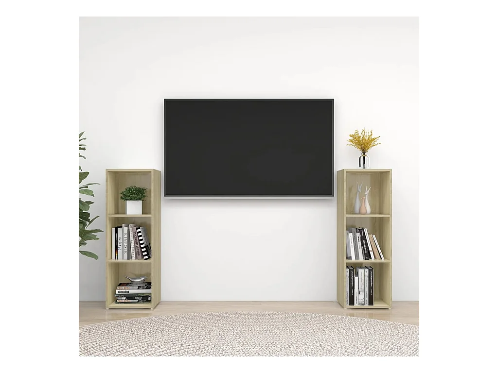 Conjunto de Mueble de TV | Mueble de salón 2 pcs Roble artisan 107 x 35 x 37 cm
