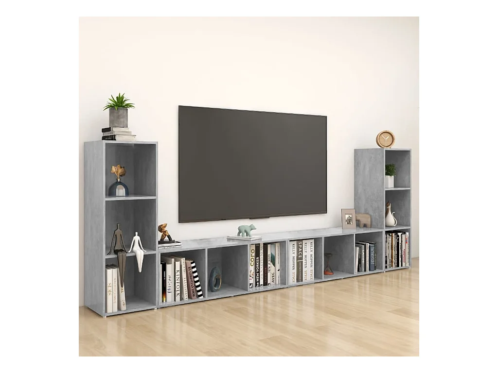 Mueble de TV | Mueble de salón 4uds madera contrachapada gris hormigón 37x35x37cm