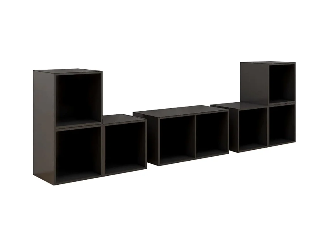 Muebles de salón | Gabinetes de TV | Muebles de TV 6 piezas madera de ingeniería gris brillo