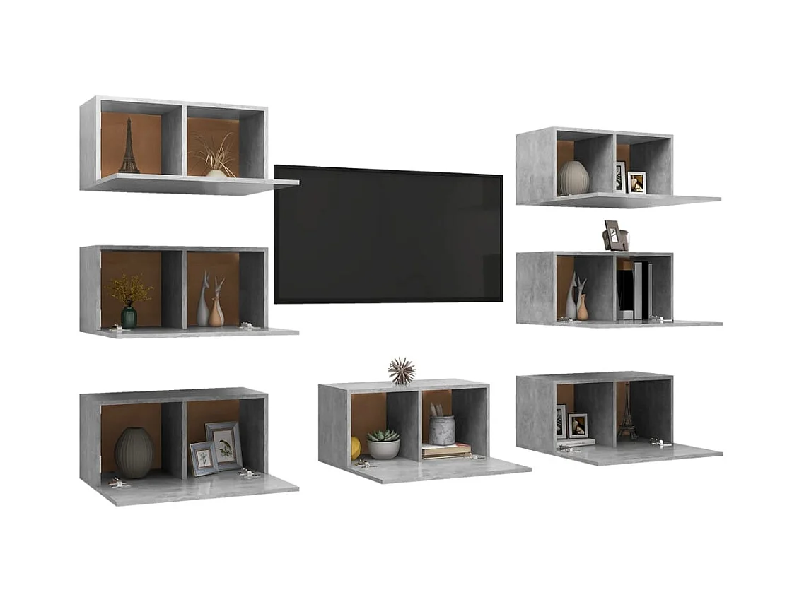 Set de muebles de TV | Gabinetes de TV | Muebles de salón 8 pzas madera contrachapada gris hormigón