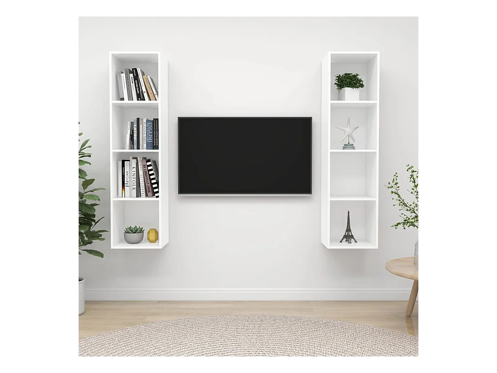 Muebles de salón | Gabinetes de TV | Muebles de TV de pared 2 uds madera ingeniería blanco