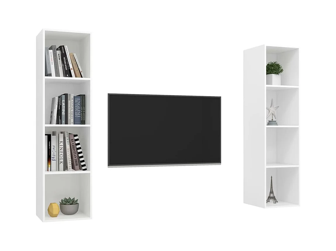 Juego de muebles de salón | Gabinetes de TV | Muebles de TV 3 piezas madera de ingeniería blanco