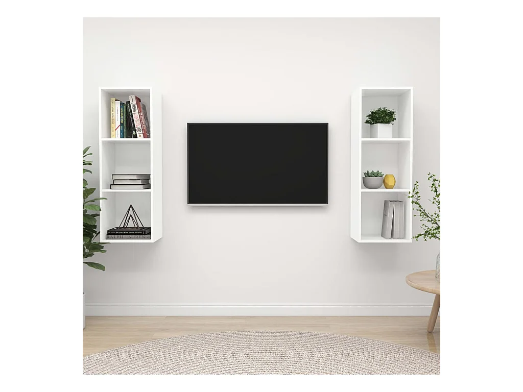 Muebles de salón | Gabinetes de TV | Muebles de TV de pared 2 uds madera ingeniería blanco