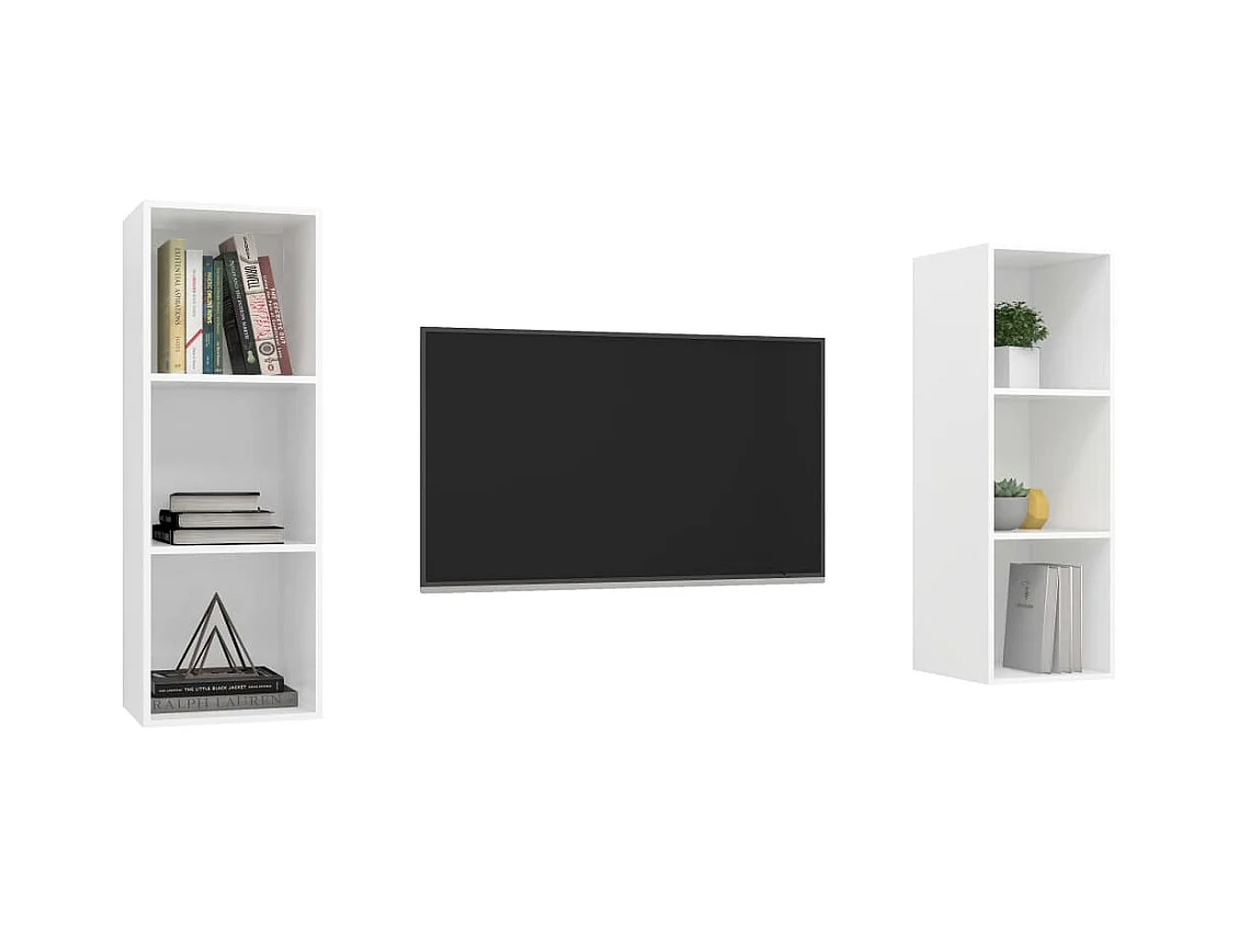 Juego de muebles de salón | Gabinetes de TV | Muebles de TV 3 piezas madera ingeniería blanco