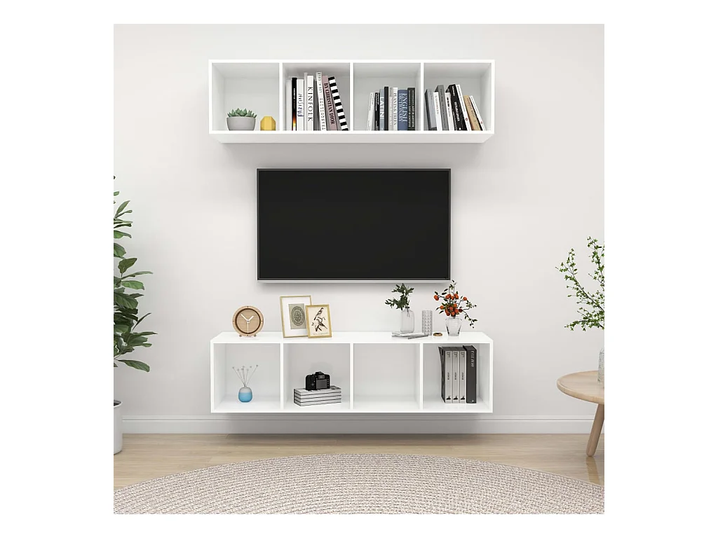 Set de muebles para TV | Gabinetes de TV | Muebles de salón 4 piezas madera contrachapada blanco