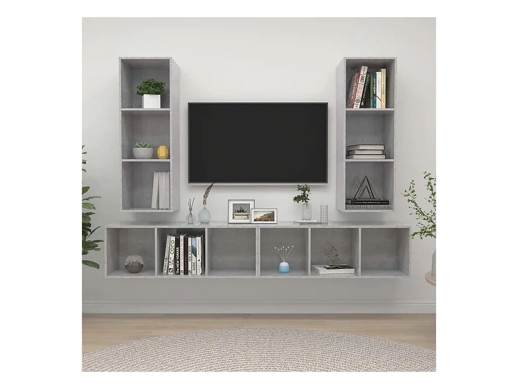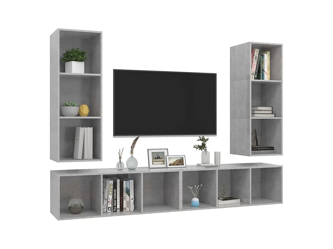 Juego de mueble para TV | Gabinete de TV | Mueble de salón de 4 piezas aglomerado gris hormigón